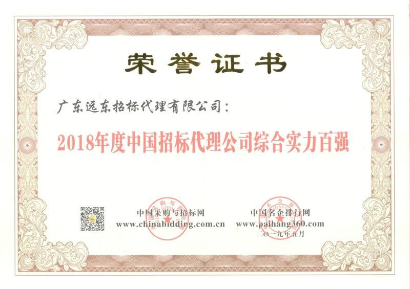 2018年度中國招標(biāo)代理公司綜合實力百強(qiáng)